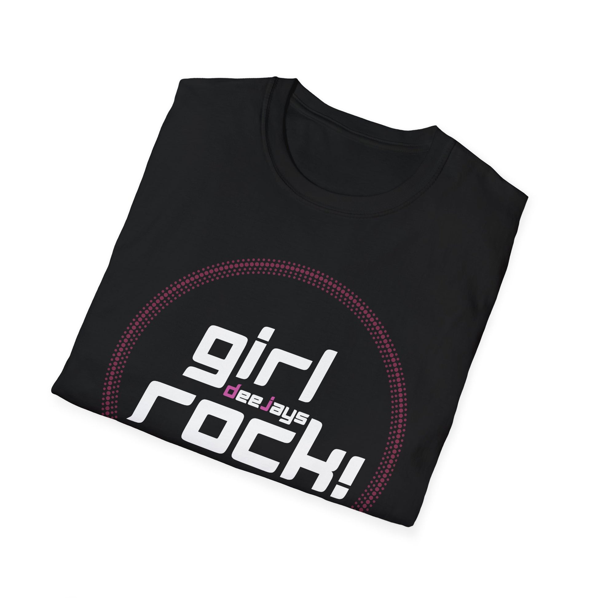 Girl DeeJays Rock! Pink Headphones T-Shirt — DJ Graphic Tee